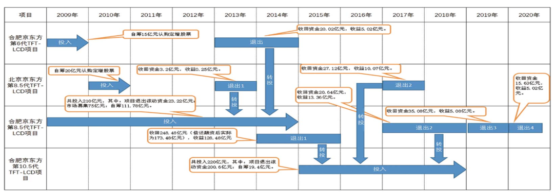 京東方系列項目:形成“股權投資、合作運營、上市退出”的成熟產業投資模式。